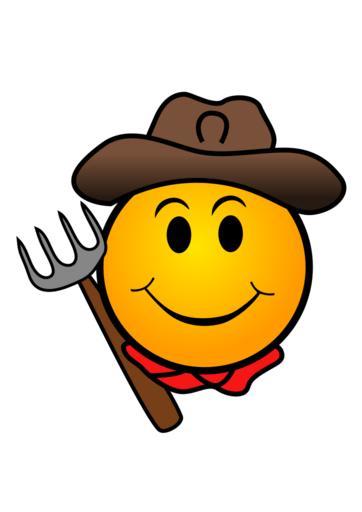 Keywords: cowboy farm farmer smiley trident dung fork muck-rake muckrake pitchfork