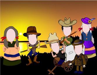 Keywords: cowboys cowgirls wild west western rednecks caricature cartoon