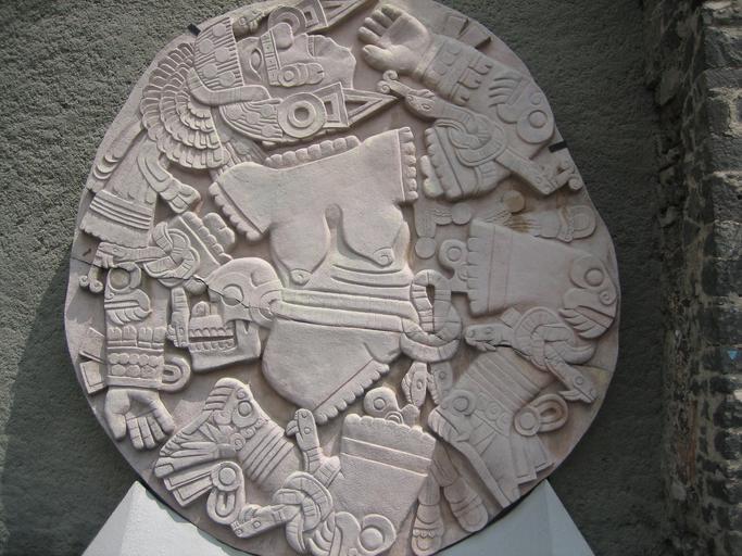 Keywords: Coyolxauhqui disc.JPG en Picture of the copy of the monolyth of goddess Coyolxauhqui Templo Mayor Mexico City ru Фотог афия копии монолита с изоб ажением богини Койольшауки музей Темпло айо ехико Templo Mayor Mexico City; Темпло айо ехико Tatiana Shulikova user Pavenis 2007-09-14 Reliefs in Mexico Museo del Templo Mayor Coyolxauhqui Aztec art Mexica monolites |