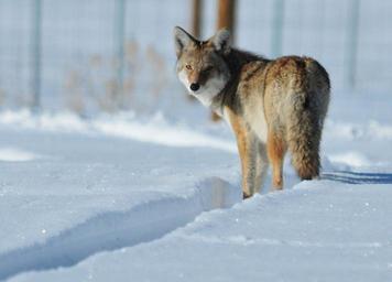 Keywords: coyote snow wildlife nature predator fur outdoors looking portrait meadow wilderness