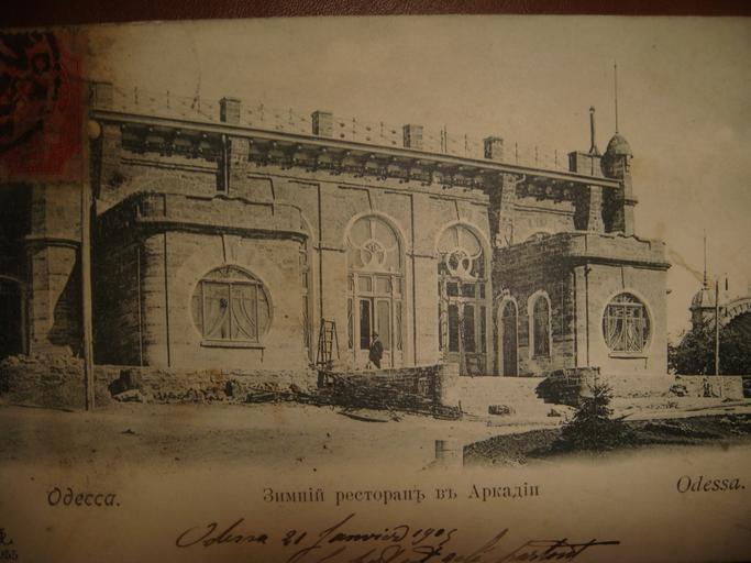 Keywords: CP Odessa Arcadia winter restaurante.JPG en Old Odessa carte Postale with view of winter restaurante in Arcadia resort ru Почтовая отк ытка начала XX века с видом зимнего есто ана на ку о те «А кадия» в Одессе Ресто ан аботал вплоть до конца XX века В настоящее в емя есто ан зак ыт здание сох анилось но никак не используется A reproduction of post cards dated 20th century scan for original paper postcard // еп одукция почтовой ка точки скан бумажной отк ытки Russian Empire Post; на отк ытке не указан 2010-07-07 Postcards of Odessa Arcadia Odessa Restaurants in Odessa PD-RusEmpire