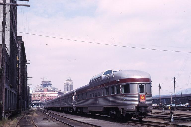 Keywords: outdoor train vehicle railroad Canadian Pacific Railway passenger train 'The Canadian', Vancouver Waterfront, Vancouver, BC in July 1965. The Canadian was officially launched as the flagship transcontinental passenger train by the Canadian Pacific Railway on 24 April 1955. It was designated as Train No. 1 (from Toronto) and 11 (from Montreal via Ottawa) going westbound to Vancouver and Train No. 2 (to Toronto), and 12 (to Montreal via Ottawa) going eastbound. The two sections join and split in Sudbury, Ontario and the train travels through Thunder Bay, Winnipeg, Regina, Calgary, and Banff. It was the first all stainless steel dome streamliner in Canada featuring stainless equipment built by the Budd Company. These stainless steel cars are still in use today on The Canadian, Via Rail Train No. 1 and 2. However, with the decline in passenger ridership in the 1970s, the Canadian Pacific Railway removed itself from the passenger rail market as the Federal Government formed the Crown corporation-Via Rail Canada in 1978, which assumed all responsibilities for CPR's passenger services. Despite the name, The Canadian today is routed through the Canadian National mainline via Sioux-Lookout, Winnipeg, Saskatoon, Edmonton, and Jasper formerly used by The Super Continental, former Canadian National Train No. 1 and 2, and former Via Rail Train No. 3 and 4. The only things preserved from The Canadian were merely the name and the stainless steel equipment. Source: www.google.ca/imgres?imgurl=http://www.railpictures.net/i... Canadian Pacific Railway passenger train 'The Canadian', Vancouver Waterfront, Vancouver, BC in July 1965. The Canadian was officially launched as the flagship transcontinental passenger train by the Canadian Pacific Railway on 24 April 1955. It was designated as Train No. 1 (from Toronto) and 11 (from Montreal via Ottawa) going westbound to Vancouver and Train No. 2 (to Toronto), and 12 (to Montreal via Ottawa) going eastbound. The two sections join and split in Sudbury, Ontario and the train travels through Thunder Bay, Winnipeg, Regina, Calgary, and Banff. It was the first all stainless steel dome streamliner in Canada featuring stainless equipment built by the Budd Company. These stainless steel cars are still in use today on The Canadian, Via Rail Train No. 1 and 2. However, with the decline in passenger ridership in the 1970s, the Canadian Pacific Railway removed itself from the passenger rail market as the Federal Government formed the Crown corporation-Via Rail Canada in 1978, which assumed all responsibilities for CPR's passenger services. Despite the name, The Canadian today is routed through the Canadian National mainline via Sioux-Lookout, Winnipeg, Saskatoon, Edmonton, and Jasper formerly used by The Super Continental, former Canadian National Train No. 1 and 2, and former Via Rail Train No. 3 and 4. The only things preserved from The Canadian were merely the name and the stainless steel equipment. Source: www.google.ca/imgres?imgurl=http://www.railpictures.net/i... |