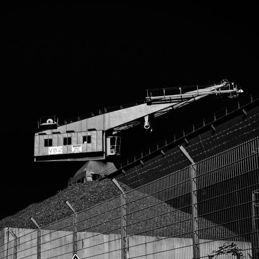 Keywords: crane load crane lifting crane crane systems port industry jib crane industrial crane harbour cranes düsseldorf inner harbour black white