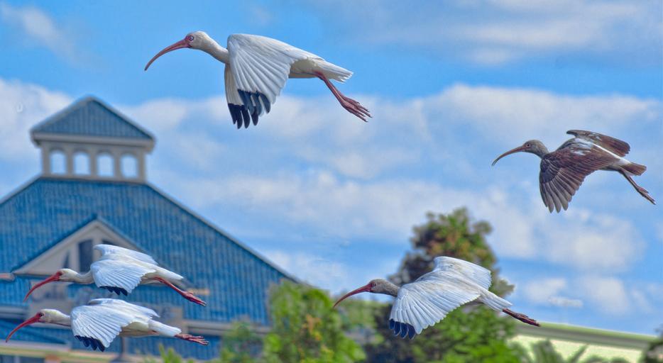 Keywords: cranes birds flying grus canadensis florida park outdoor sky lake nature seminole