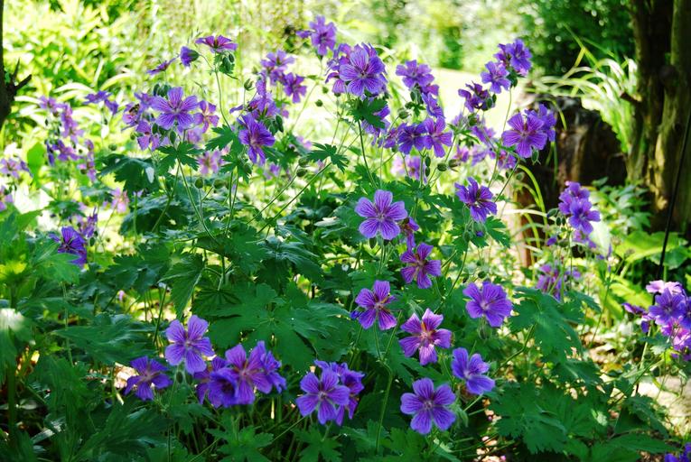 Keywords: cranesbill purple blossom bloom flower close summer violet beautiful decorative bed light shadow