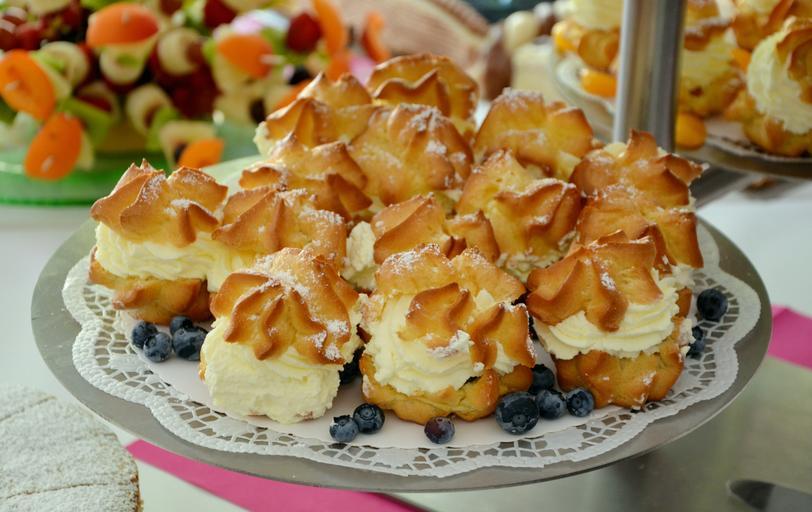 Keywords: cream puff cream pastries bake baked goods creamy delicious choux pastry celebration cake buffet sweet feasting blueberries eat