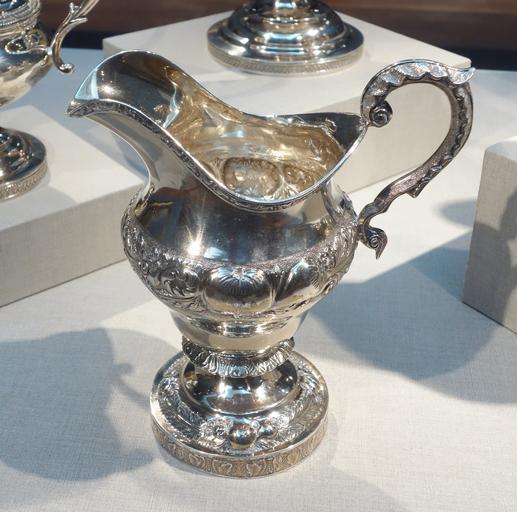 | Keywords: Creampot by Joseph T. Bailey and Andrew Kitchen, Baltimore, c. 1840, silver - De Young Museum - DSC01253.JPG en Exhibit in the De Young Museum San Francisco California USA This artwork is in the public domain because the artist died more than 70 years ago Photography was permitted in the museum without restriction 2013-11-05 17 21 10 own Daderot other versions cc-zero American metalwork in the De Young Museum Uploaded with UploadWizard Bailey Kitchen | ||||
