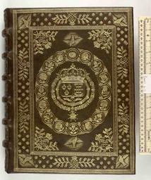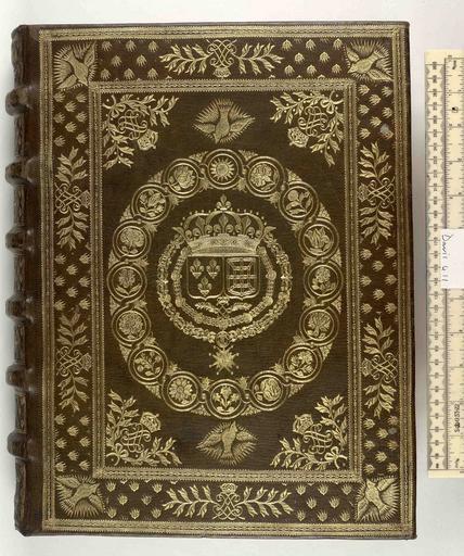 | Keywords: Creations de Louis XIV dans l'Ordre du Saint Esprit.. de 1654-1663. -Manuscript- - Upper cover (Davis411).jpg Style Armorial Bird motif Panel design Flames or rays Sun Floral; Caption Upper cover; Colour Brown; Edge Gilt exhibition history Decorative Technique Tooled in gold; Cover Material Goatskin includes morocco turkey etc This may be a 19c imitation For other French 17c bindings see Isabelle de Conihout Pascal Ract-Madoux Relieures Francaises du 17c Paris 2002 Reproduced in M Foot Les reliures françaises fig 5; see R R Holmes Specimens of Royal fine and historical Bookbindings p 13 n 129 too object history Text 1665-71; Paris; Louis XIV King of France 1638-1715 object type Cc-zero place of creation Binding France place of discovery Unspecified British Library image http //www bl uk/catalogues/bookbindings/LargeImage aspx RecordId 020-000004032 ImageId ImageId 41621 Copyright BL Creations de Louis XIV dans l'Ordre du Saint Esprit de 1654-1663 Manuscript Uploaded with GWToolset Creations de Louis XIV dans l'Ordre du Saint Esprit de 1654-1663 Manuscript - Upper cover Davis411 http //www webarchive org uk/bldatasets/bindings/6136_4 jpg 19th-century bookbinding Bookbinding British Library Bookbindings |