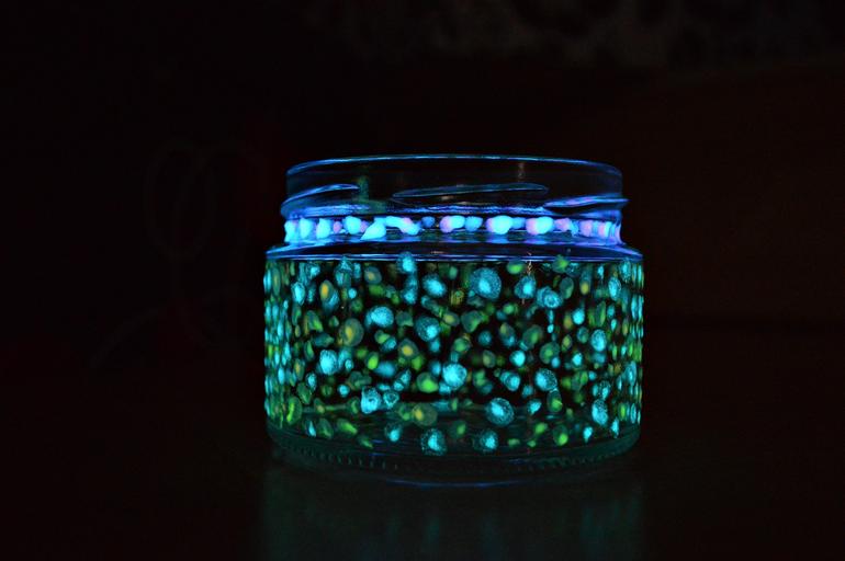 Keywords: creative diy idea recycling preserving bottles luminous paint paint light black glass decoration