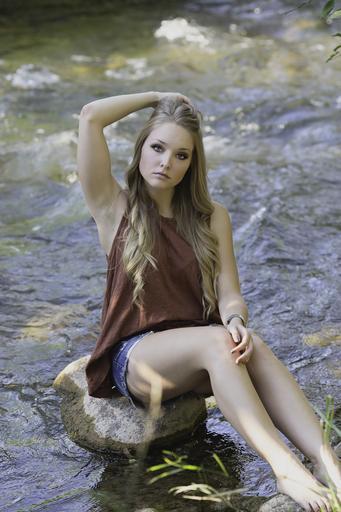 Keywords: creek country girl water nature landscape tranquil rock countryside outdoor stream natural scenic model beautiful woman country girl summer