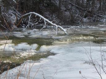 Keywords: creek drifting ice ice covered water ice cold winter season landscape nature snow