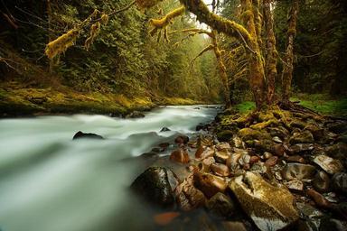 Keywords: creek stream forest motion flow stones pebbles river bed tree moss covered old water landscape nature outdoor scenic wet atmospheric mystic peaceful wilderness fresh