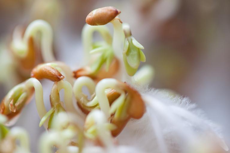 Keywords: cress seedlings seedling plant developing germ embryophyta germ leaves sprouting section radicula root system curved s shaped tender green white light brown naturkost bio nutritious delicious macro