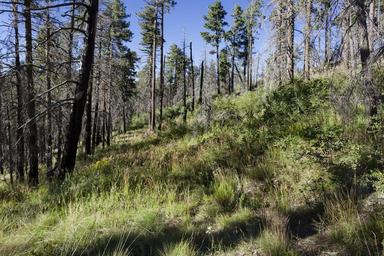 | Keywords: Crest of the Black Range, south of McKnight Peak between East Canyon and Sids Prong, 32.97946 -107.83880, Grant County, New Mexico, 18 Sep 2016. Recently burned Douglas fir forest, with <i>Aletes filifolius, Achillea millefolium, Artemisia carruthii, Erigeron neomexicanus, Heliomeris multiflora, La&eum;nnecia schiedeana, Oreochrysum parryi, Pseudognaphalium, Senecio eremophilus, Phacelia heterophylla, Carex, Robinia neomexicana, Quercus gambelii, Geranium caespitosum, Malaxis soulei, Pseudotsuga menziesii, Penstemon barbatus, Bromus ciliatus, Festuca arizonica, Koeleria macrantha, Ipomopsis aggregata, Fragaria virginiana</i> subsp. <i>glauca, Prunus virginiana, Populus tremuloides,</i> etc. |