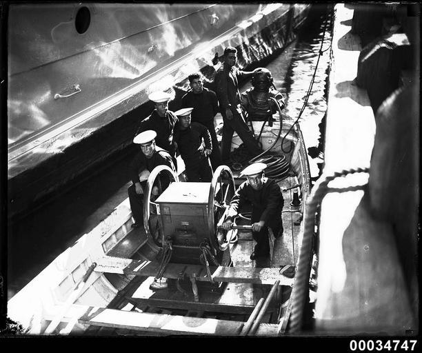 View Original:Crew_of_the_Chilean_naval_vessel_GENERAL_BAQUEDANO_preparing_for_a_dive,_July_1931.jpg (1385x1158)