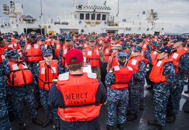 | Keywords: Crewmembers aboard the hospital ship USNS Mercy participate in an abandon ship drill. (26951471775).jpg SAN DIEGO May 6 2016 Crewmembers aboard the hospital ship USNS Mercy T-AH 19 participate in an abandon ship drill while in its homeport at Naval Base San Diego Mercy is preparing for Pacific Partnership the largest annual multilateral humanitarian assistance and disaster relief preparedness mission conducted in the Indo-Asia-Pacific region This year's mission will include more than 600 military and civilian personnel from the U S Australia New Zealand Canada the United Kingdom and Japan U S Navy photo by Mass Communication Specialist 2nd Class Hank Gettys/Released 160506-N-SJ730-037 Join the conversation http //www navy mil/viewGallery asp www navy mil/viewGallery asp http //www facebook com/USNavy www facebook com/USNavy http //www twitter com/USNavy www twitter com/USNavy http //navylive dodlive mil navylive dodlive mil http //pinterest com pinterest com https //plus google com plus google com https //www flickr com/photos/usnavy/26951471775/ Crewmembers aboard the hospital ship USNS Mercy participate in an abandon ship drill 2016-05-06 09 59 https //www flickr com/people/56594044 N06 Official U S Navy Page from United States of America MC2 Hank Gettys/U S Navy Attribution License IPTC Caption-Abstract U S Navy photo PD-USGov-Military-Navy Official U S Navy Imagery https //flickr com/photos/56594044 N06/26951471775 2016-05-11 19 52 26 cc-by-2 0 Aboard USNS Mercy T-AH-19 Photographs taken on 2016-05-06 Taken with Nikon D4 160506-N-SJ730-037 Navy Files from the U S Navy Flickr stream |