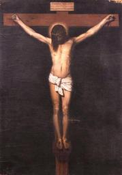| Keywords: Cristo crucificado, copia del original de Velázquez (Real Academia de Bellas Artes de San Fernando).jpg  La obra representa a Jesucristo crucificado y es una copia decimonónica del cuadro de Diego Velázquez conservado en el Museo del Prado Siglo XIX oil on canvas Size cm 69 98 Institution Real Academia de Bellas Artes de San Fernando http //ceres mcu es/pages/Main accession number 1271 http //ceres mcu es/pages/Main PD-old-100 Paintings of Crucifixion of Christ in Spain 19th-century paintings of the Crucifixion of Christ Paintings after Diego Velázquez Leopoldo Sánchez Díaz 19th-century paintings in the Royal Academy of Fine Arts of San Fernando |