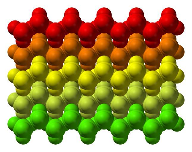 Keywords: CrO3-from-xtal-1970-bulk-chains-distinguished-by-colour-3D-sf.png Space-filling model of part of the crystal structure of chromium trioxide CrO<sub>3</sub> Colour code Atoms are not coloured according to which element they are as is usually the case Instead different colours correspond to different CrO<sub>3</sub> <sub>n</sub> chains Structure by X-ray crystallography from http //dx doi org/10 1107/S0567740870002182 Acta Cryst B 1970 26 222-226 Model manipulated in http //www crystalmaker com/ CrystalMaker 8 3 Image generated in http //accelrys com/products/discovery-studio/visualization/discovery-studio-visualizer html Accelrys DS Visualizer Own 2011-03-21 Ben Mills Benjah-bmm27 Images by Ben Mills Chromium trioxide |