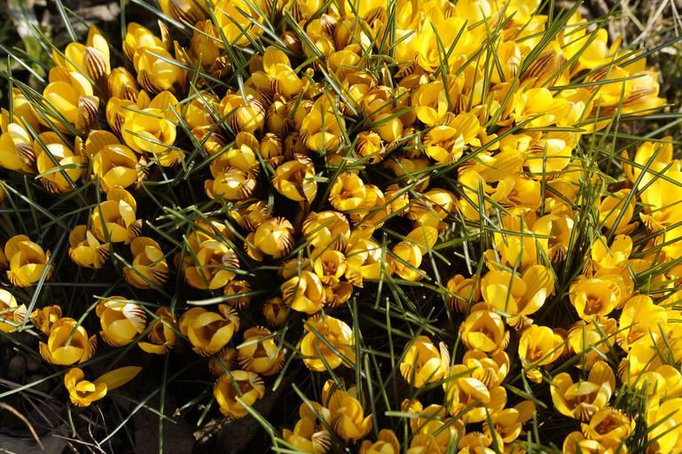 Keywords: crocus garden end of winter early bloomer spring yellow plant flower nature blossom bloom spring crocus harbinger of spring frühlingsanfang springtime spring flower mass quantitative many beautiful frühlingsblüher bloom bright