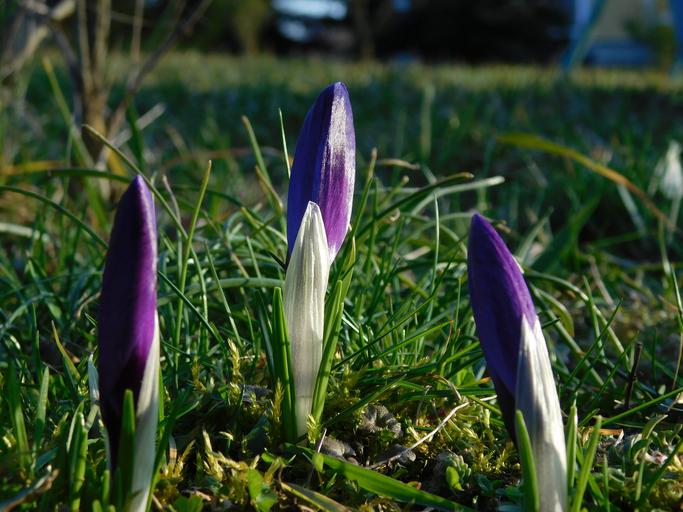 Keywords: crocus spring flower green purple blossom season garden april bloom violet grass