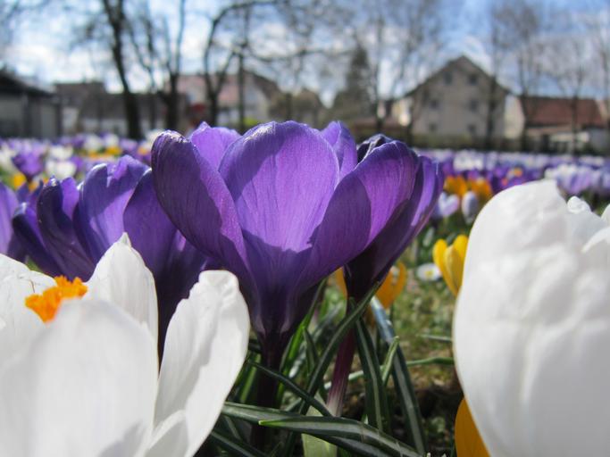 Keywords: crocus spring frühlingsanfang flower purple flowers white nature spring crocus spring flower close meadow bavaria germany