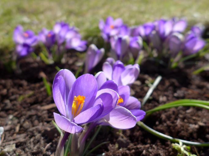 Keywords: crocus spring purple blossom bloom spring flower plant close yellow violet garden harbinger of spring flora springtime frühlingsanfang early bloomer flowers earth brown green