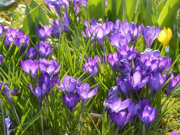 Keywords: crocus yellow purple violet blue bloom blossom bloom plant nature spring flower harbinger of spring schwertliliengewaechs spring crocus flora flowers colorful cheerful friendly springtime joy spring fever
