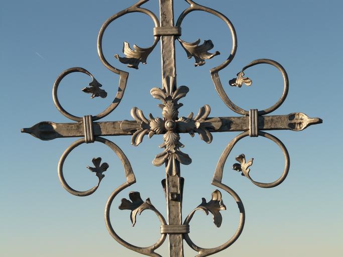 Keywords: cross iron grid ornament metal sky faith god christianity