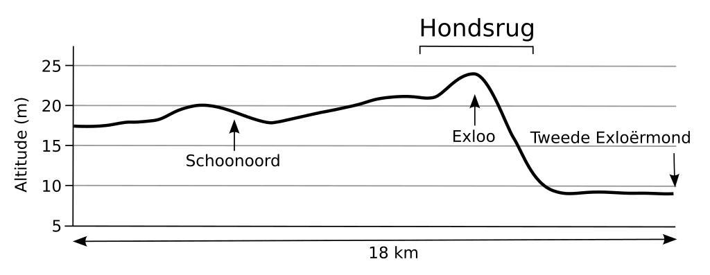 | Keywords: Cross section Hondsrug Netherlands.svg Cross-section of the Hondsrug a chain of hills in the Dutch province of Drenthe and the surrounding land along a straight line through the villages of Schoonoord in the municipality of Coevorden Exloo and Tweede Exloërmond both in Borger-Odoorn Warning this figure is only intended to give an idea of the general shape A certain amount of interpolation has taken place 2006-01-29 own assumed DennisM Hondsrug | ||||