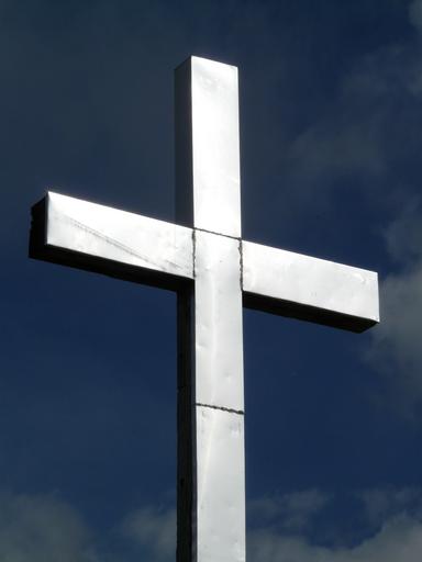Keywords: cross summit cross metal gloss sunlight reflection light blue silver