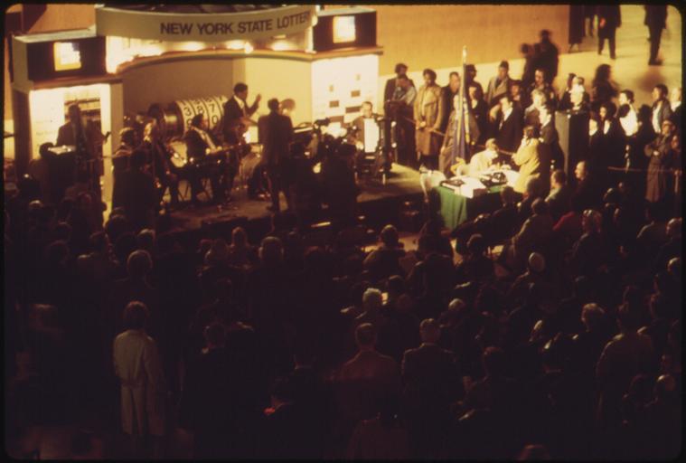 | Keywords: CROWD COLLECTS IN NEW YORK CITY'S GRAND CENTRAL STATION TO FIND OUT SOME OF THE WINNERS OF THE NEW YORK STATE... - NARA - 556694.tif Scope and content General notes 556694 Local identifier 412-DA-14242 Environmental Protection Agency 12/02/1970 - NARA-Author Pickerell Jim 1936- Photographer 4588217 <br /> New York New York state United States North and Central America inhabited place 4191644 40 7 -74 <br /> Still Picture Records Section Special Media Archives Services Division NWCS-S National Archives at College Park 8601 Adelphi Road College Park MD 20740-6001 04/1974 Record group Record Group 412 Records of the Environmental Protection Agency 1944 - 2006 Record group ARC 708 DOCUMERICA The Environmental Protection Agency's Program to Photographically Document Subjects of Environmental Concern compiled 1972 - 1977 Series ARC 542493 File unit File unit ARC Variant control numbers Agency-Assigned Identifier 238/22/014242<br /> NAIL Control Number NWDNS-412-DA-14242 yes Other versions <gallery> File CROWD_COLLECTS_IN_NEW_YORK_CITY'S_GRAND_CENTRAL_STATION_TO_FIND_OUT_SOME_OF_THE_WINNERS_OF_THE_NEW_YORK_STATE _-_NARA_-_556694 tif tif File CROWD_COLLECTS_IN_NEW_YORK_CITY'S_GRAND_CENTRAL_STATION_TO_FIND_OUT_SOME_OF_THE_WINNERS_OF_THE_NEW_YORK_STATE _-_NARA_-_556694 jpg jpg </gallery> NARA-cooperation PD-USGov Interior of the Grand Central Terminal 1974 in New York City NARA images of New York NARA TIF images with categorized JPGs |