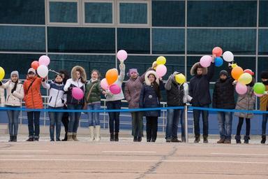 Keywords: crowd people welcoming soyuz cosmonauts mission return earth space happy audience success celebration