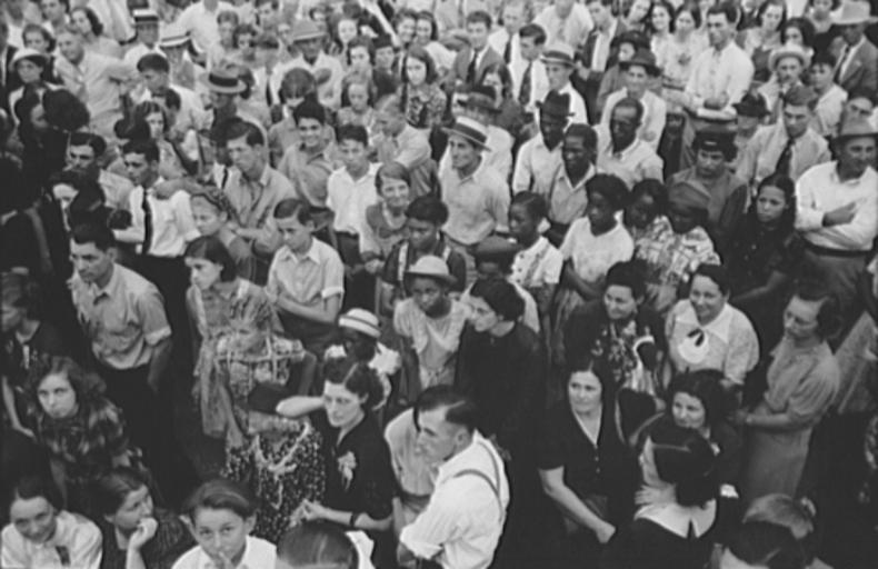 | Keywords: CrowleyCrowdListening1938.jpg Crowd listening to Cajun band National Rice Festival Crowley Louisiana 1938 Photo by Russell Lee for Farm Security Administration/WPA via http //hdl loc gov/loc pnp/fsa 8a24073 1938-10 Creator Russell Lee PD-USGov National Rice Festival 1938 black and white photographs of crowds Cajun musicians |