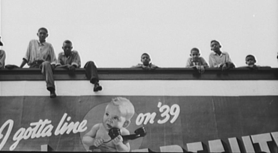 | Keywords: CrowleyNegroBoysOnBillboardRussellLee.jpg Negro boys atop billboard National Rice Festival Crowley Louisiana 1938 Photo by Russell Lee for Farm Security Administration/WPA via http //hdl loc gov/loc pnp/fsa 8a24094 1938-10 Creator Russell Lee PD-USGov National Rice Festival 1938 Billboards in Louisiana African American children |