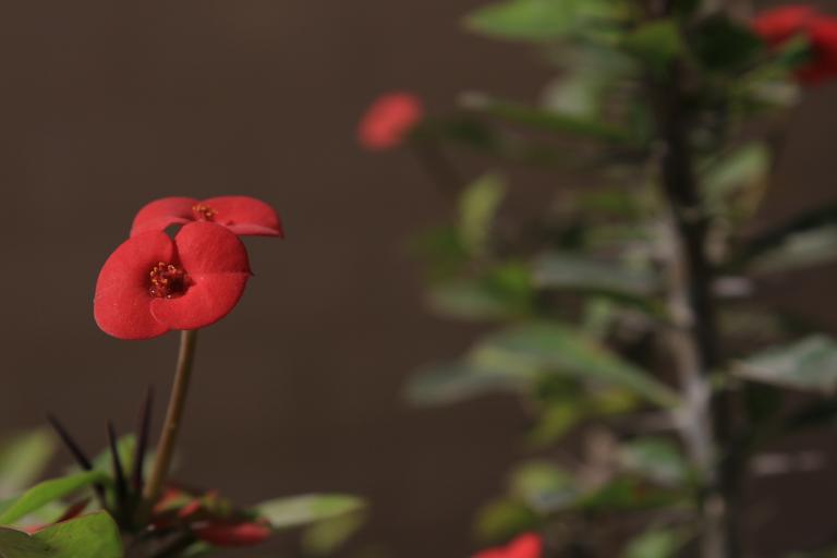 Keywords: crown of thorns euphorbia shaft flower nature green two leaves red flower plant messiah plant christ thorn flowers red