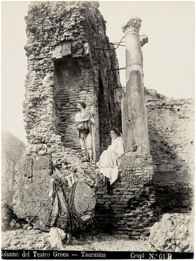Keywords: Crupi, Giovanni (1849-1925) - n. 0061B - Colonne del Teatro greco - Taormina.jpg Giovanni Crupi 1849-1925 Colonne del Teatro Greco - Taormina Numero di catalogo 61 B L'immagine presenta un ritratto del fotografo Wilhelm von Gloeden travestito da gladiatore e di un altro personaggio non ancora identificato travestito da antico romano Appare anche nel catalogo di Gloeden mantenendo il n 61 poiché un'immagine dello stesso servizio fu pubblicata nel 1893 questa immagine fu creata entro quell'anno Il fatto che il numero di catalogo di Crupi riprenda un numero già esistente obbligandolo quindi ad aggiungere la B di bis implica che l'inserimento nel catalogo di Gloeden abbia preceduto quello nel catalogo di Crupi Giovanni Crupi 1849-1925 Columns of the Greek Theatre - Taormina Catalogue 61 B The saleroom - http //www the-saleroom com/en-us/auction-catalogues/bassenge/catalogue-id-bassenge10002/lot-9125f33a-b5bb-46c7-b677-a48b00e802d8 s 1880 /1890s creator Giovanni Crupi PD-old-80-1923 <gallery> File Gloeden Wilhelm von 1856-1931 - n 0060 recto - Teatro Greco di Taormina con autoritratto jpg Wilhelm von Gloeden photo 060 Recto File Gloeden Wilhelm von 1856-1931 - n 0060 verso - Teatro Greco di Taormina con autoritratto jpg Wilhelm von Gloeden photo 060 verso File Pietsch Ludwig 1824-1911 - Kunst und Photographie - Velhagen Klasings Monatshefte 1893-94 p 393 jpg Wilhelm von Gloeden 1893 engraving File Gloeden Wilhelm von 1856-1931 - n 061 deposé 1902 - Getty Museum jpg Wilhelm von Gloeden photo 061 Autoritratto come gladiatore / Selfportrait as a gladiator File Crupi Giovanni 1849-1925 - n 0061B - Colonne del Teatro greco - Taormina jpg Giovanni Crupi photo 061 B File Gloeden Wilhelm von 1856-1931 - n 0110 - Taormina - Teatro Greco con autoritratto - Beautés siciliennes p 119 jpg Wilhelm von Gloeden photo 110 File Gloeden Wilhelm von 1856-1931 - Autoritratto come gladiatore jpg n - Autoritratto come gladiatore / Selfportrait as a gladiator </gallery> Historical images of the Greek theatre of Taormina by Giovanni Crupi 0060 Italy in the 1890s Portraits of Wilhelm von Gloeden 1892 Ancient Greek-Roman theatre Taormina - Stage 1893 Ancient Greek-Roman theatre Taormina - Architectural details 1893 Gladiators 1893 |