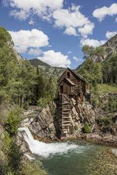 | Keywords: Crystal Mill, an 1892 wooden powerhouse located on an outcrop above the Crystal River in what remains of an old mining town, Crystal, high in the Rocky Mountains in Gunnison County, Colorado LCCN2015633762.tif 1 photograph digital tiff file color Notes Purchase; Carol M Highsmith Photography Inc ; 2015; DLC/PP-2015 068 ; Forms part of Gates Frontiers Fund Colorado Collection within the Carol M Highsmith Archive ; Credit line Gates Frontiers Fund Colorado Collection within the Carol M Highsmith Archive Library of Congress Prints and Photographs Division ; Title date and keywords based on information provided by the photographer ; Although called a mill it is more correctly a compressor station which used a water turbine to drive an air compressor to run power machinery at nearby silver mines While the Crystal Mill is often reputed to be the most photographed site in the state this is logistically impossible as it is reached by only two precarious high-mountain dirt roads including one from the town of Marble that is pocked with ruts and large stones and advisable for four-wheel-drive travel only Wheras more than 400 people once lived in Crystal during its heyday in the early 20th Century when the town even had two flourishing newspapers fewer than 10 people including the town mayor live there today 2015 and then only in the summertime when Crystal is not snowbound 2015 Creator Carol M Highsmith Library of Congress Catalog http //lccn loc gov/2015633762 Image download https //cdn loc gov/master/pnp/highsm/33700/33746a tif Original url http //hdl loc gov/loc pnp/highsm 33746 No known restrictions on publication LOC-image highsm 33746 PD-Highsmith Images uploaded by Fæ Gates Frontiers Fund Colorado Collection within the Carol M Highsmith Archive Crystal River Colorado Gates Frontiers Fund Colorado Collection within the Carol M Highsmith Archive Library of Congress Prints and Photographs Division Photographs by Carol M Highsmith Crystal Mill |