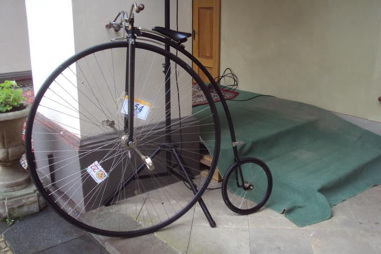 Keywords: CS vysoké kolo.JPG cs Kolo na nádvoří zámku při slavnostech own Zákupák 2014-05-17 Císařské slavnosti Zákupy 2014 Penny-farthings