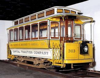 Keywords: CTC-303.jpg This 4-wheel electric motor car was one of sixteen built for the Capital Traction Company by the American Car Company Car 303 was assigned to the 7th Street line which ran from the Wharves to Boundary It was used as a motor car and regularly pulled a light trailer car until its retirement from regular service in 1913 This car on display at the Museum of American History is the only Washington streetcar still in the District http //americanhistory si edu/collections/search/object/nmah_843291 Smithsonian National Museum of American History date author PD-USGov original upload log page en wikipedia CTC-303 jpg 2007-07-13 19 15 Volcycle 428×334× 55080 bytes <nowiki>This photo is owned by the Smithsonian's National Museum of American History http //americanhistory si edu/collections/object cfm key 35 objkey 148</nowiki> Trams in Washington D C Number 303 on trams White and yellow trams |