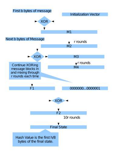 Keywords: CubeHash.svg en Diagram of how CubeHash works Own MindlessGames 2009-05-01 Block diagrams Hashing Network protocols