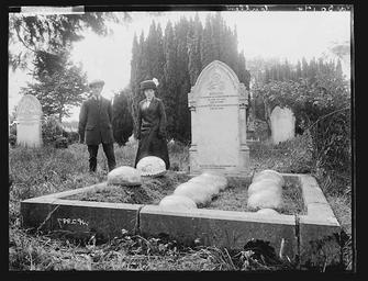 Keywords: cullen proni allison allison & co. photographers allisoncophotographers family family portrait familyportrait genealogy blackandwhite monochrome photo border outdoor black and white Creator: H. Allison & Co. Photographers Date: c.1914 Original Format: Glass Plate Negative Description: Cullen family. A man and woman at the grave of Matilda and David Robinson, Armagh. PRONI Ref: D2886/W/Family/54 Copying and copyright: Please see www.proni.gov.uk/index/research_and_records_held/copying_... For Copy Orders, contact: Email: proni@dcalni.gov.uk For fees and charges see: www.proni.gov.uk/index/about_proni/are_there_any_fees_and... Creator: H. Allison & Co. Photographers Date: c.1914 Original Format: Glass Plate Negative Description: Cullen family. A man and woman at the grave of Matilda and David Robinson, Armagh. PRONI Ref: D2886/W/Family/54 Copying and copyright: Please see www.proni.gov.uk/index/research_and_records_held/copying_... For Copy Orders, contact: Email: proni@dcalni.gov.uk For fees and charges see: www.proni.gov.uk/index/about_proni/are_there_any_fees_and...