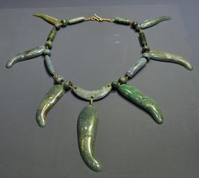 | Keywords: Cultures précolombiennes MRAH Olmèque collier jade 02 10 2011.jpg fr Collier en jadéite avec des éléments représentant des griffes de jaguar culture olmèque préclassique moyen 900 - 400 -JC Mexique ou Honduras Musées Royaux d'Art et d'Histoire MRAH Parc du Cinquantenaire Bruxelles 2011-10-02 own Vassil Cc-zero Collection from America Jubilee Park Museum Jadeite Mesoamerican jade jewellery | ||||