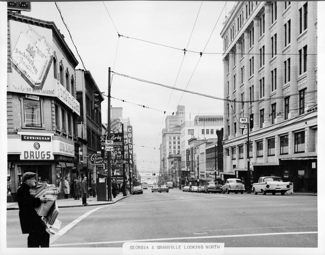 | Keywords: vancouver neon blackandwhite monochrome road architecture building outdoor building complex black and white PHOTO NUMBER: 49598 DESCRIPTION: Cunningham Drugs Ltd, Granville & Georgia looking north, Vancouver, BC PHOTOGRAPHER:unknown DATE: 1955 SUBJECTS:Drug stores, Neon More information on our historical photograph collection: www.vpl.ca/historicalphotos PHOTO NUMBER: 49598 DESCRIPTION: Cunningham Drugs Ltd, Granville & Georgia looking north, Vancouver, BC PHOTOGRAPHER:unknown DATE: 1955 SUBJECTS:Drug stores, Neon More information on our historical photograph collection: www.vpl.ca/historicalphotos |