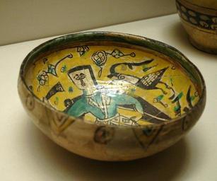 Keywords: Cup buff-ware MET 38.40.290.jpg Buff-ware cup with man Coupe au personnage en céramique chamois ou buff-ware century 10 earthenware ; glaze transparent decoration polychrome cm 9 2 20 Institution Metropolitan Museum of Art Department of Islamic Art gallery 453 140006771 object history RelativeLocation Nishapur Iran credit line ProvenanceEvent purchase Rogers Fund 1938 accession number 38 40 290 Marie-Lan Nguyen 2006 other versions <gallery>File Bowl buff ware Met 38 40 290 n02 jpg</gallery> Human figuration in Islamic art Buff-ware in islamic ceramics Iranian pottery in the Metropolitan Museum of Art