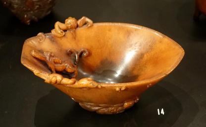 | Keywords: Cup decorated with zhi-dragons, China, Ming dynasty, 1368-1644 AD, rhinoceros horn - Östasiatiska museet, Stockholm - DSC09527.JPG en Exhibit in the Östasiatiska museet Stockholm Sweden This artwork is old enough so that it is in the public domain Photography was permitted in the museum without restriction 2014-09-13 06 50 56 own Daderot other versions cc-zero Uploaded with UploadWizard Art of China in Östasiatiska museet Carved rhinoceros horns of China | ||||