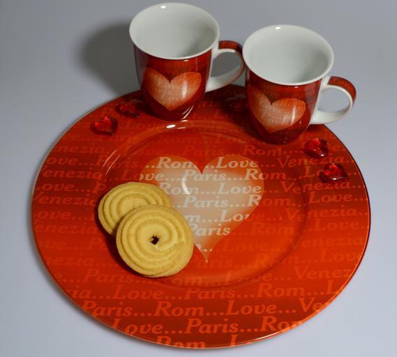 Keywords: cup heart romance valentine's day tableware coffee love plate pastries biscuit