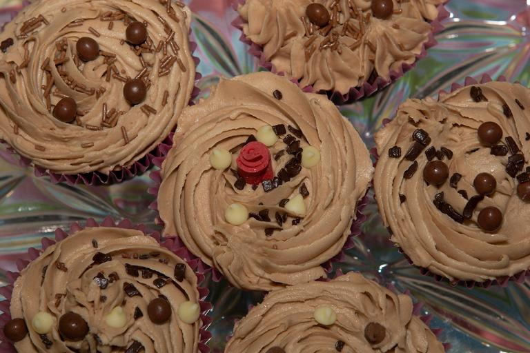 Keywords: cupcakes chocolate cake dessert teatime brown sweet baked snack muffin bakery cream baking birthday treat icing butter cream frosting party decorated