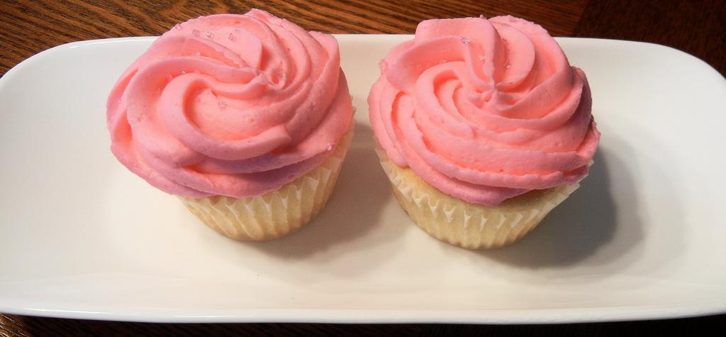 Keywords: cupcakes pink frosting sweet white cake food desert
