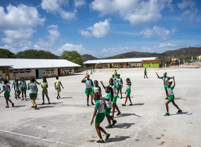 Keywords: curacao school students children caribbean tropical education learning uniforms nature recess happy smiling people