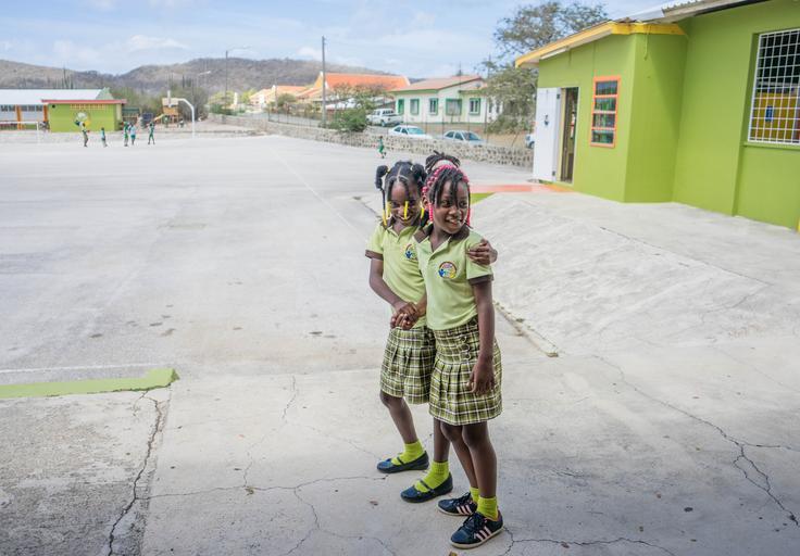 Keywords: curacao school students children caribbean tropical education learning uniforms nature recess happy smiling people